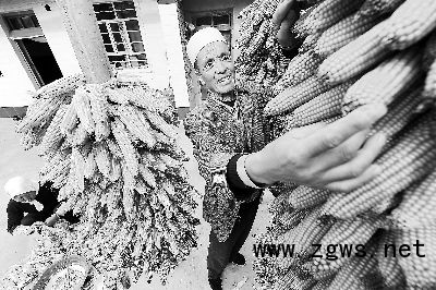 上图为在宁夏回族自治区西吉县兴平乡,当地农民正在晾晒成捆的玉米(10月12日摄)。