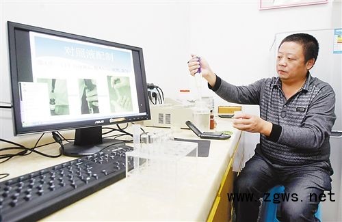 近日,九龙坡区陶家镇农业服务中心农技员牟巴山正在对市场采集来的蔬菜样本进行检测。据了解,为提高农产品质量安全水平,确保市民吃上放心菜,该镇建立了蔬菜水果农药残留快速检测室。检测室面积虽小,但各种仪器检测设备齐全,能在20分钟之内检测出蔬菜水果是否残留农药。