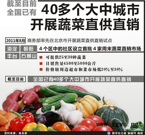 记者26日从商务部获悉,为更好地解决农民卖菜难、居民买菜贵问题,2011年8月起商务部开展了蔬菜直供直销试点。截至目前,全国已有40多个大中城市开展蔬菜直供直销。